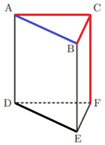 \( AB=2 \; cm,BC=3\sqrt{5} \; cm,∠ABC=90° \) の直角三角形を図に書いてみると右の図のようになります。