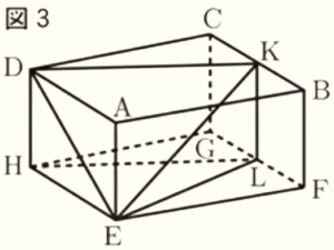 (2) 図3において,辺 \( BC,FG \) の中点をそれぞれ \( K,L \) とする。