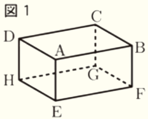 図1,図3,図4の立体 \( ABCD-EFGH \) は,\( AB=2\sqrt{6} \; cm,AD=2\sqrt{3} \; cm,AE=3 \; cm \) の直方体であり,図2は,図1の展開図である。