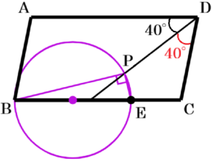 条件➂について,\( ∠BPE \) を円周角と考えると,