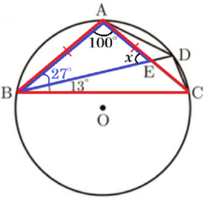 \( △ABE \) において,\( ∠AEB=x \) とすると,