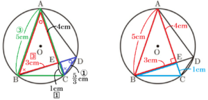 (3) 図3において,\( AE=4 \; cm,EC=1 \; cm \),\( CD=\dfrac{5}{3} \; cm \) とする。