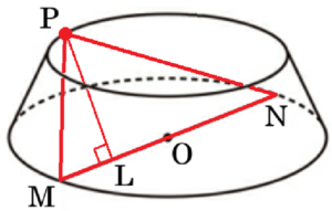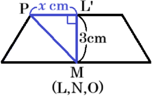 点 \( P \) から線分 \( MN \) に垂線をひいた交点を \( L \).