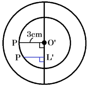 とすると,線分 \( L’P \) は \( O’P \) より短くなりす。