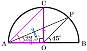 \( △OAC \) は直角二等辺三角形なので \( ∠CAB=45° \) であり,