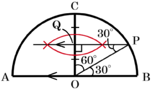 \( OQ:OP=1:2 \) であり,\( △OPQ \) は \( 30°,60°,90° \) の直角三角形になっています。