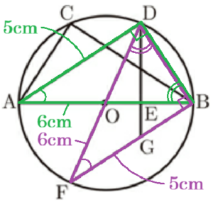 問3と同様の考え方で \( △DFB≡△BAD \) なので,