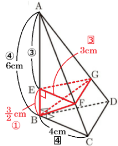 \( AB=6 \; cm,AE=\dfrac{25}{6} \; cm \) より,