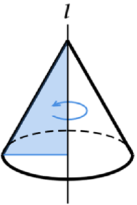 ウ 円錐 ・・・ 直角三角形の直角をなす1辺を含む直線 \( l \) を軸として1回転させた立体