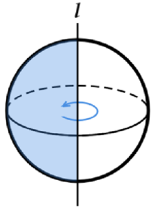 エ 球 ・・・ 半円の直径部分を含む直線 \( l \) を軸として1回転させた立体