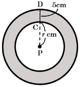 (2) \( PQ=2 \; cm \) のとき,\( BQ,BC \) と \( \stackrel{\huge\frown}{ QC } \) で囲まれた部分( ) の面積を求めなさい。