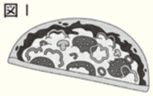 (8) 図Ⅰのような半円の形をしたピザがある。瑞希さんは,包丁を使ってピザを6等分するためには,ピザのどの部分に切れ目を入れればよいか考え,図Ⅱをかいて調べることにした。