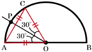 \( △OAC \) は内角の1つが \( 60° \) の二等辺三角形,つまり,正三角形になります。