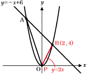 直線 \( PB \) は \( P(0,0),B(2,4) \) を通るので,
