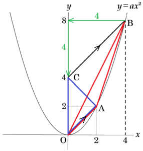 \( A(2,2) \) は,\( y=ax^2 \) 上の点なので,