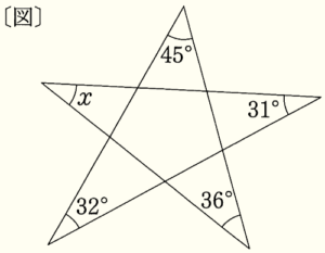 (4) 右の[図]において,\( ∠x \) の大きさを求めなさい。