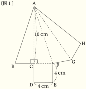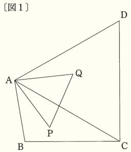 右の〔図1〕のような四角形 \( ABCD \) があり,\( △ACD \) は正三角形である。
