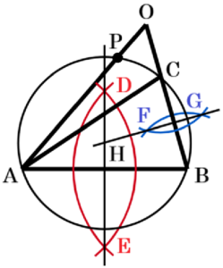 手順5の円と辺 \( OA \) の交点が求める点 \( P \) になります。