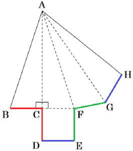 となり,3本の線分で点 \( B \) から点 \( D \) までが