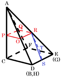 四角すい \( A-OPQR-( \) 四角すい \( A-OPQR+ \) ,三角すい \( R-EST) \)