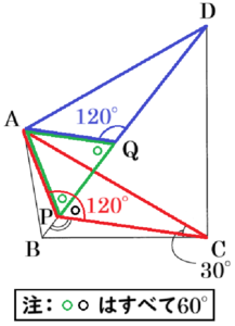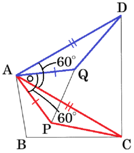 \( △APQ \) は正三角形あることから \( ∠AQP=60° \) なので,