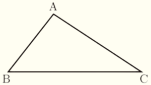 (11) 図のような \( △ABC \) において,辺 \( BC \) を底辺とみたときの高さを \( AH \) とするとき,辺 \( BC \) 上の点 \( H \) を定規とコンパスを使って作図しなさい。作図に使った線は残しておきなさい。
