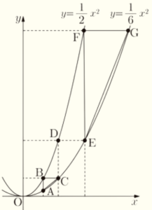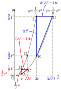 点 \( A \) の \( y \) 座標は,\( \dfrac{1}{6}t^2 \)