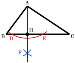 この三角形の高さ \( AH \) は点 \( A \) から辺 \( BC \) にひいた垂線になります。