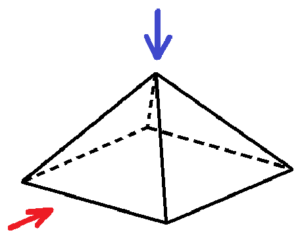 に見えるので,立面図が三角形,平面図が四角形になっている ウ になります。