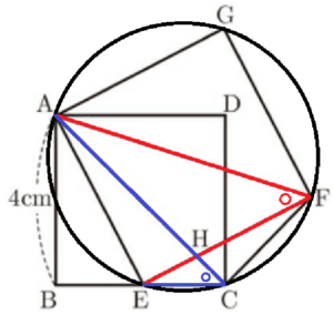 \( △AFE \) と \( △ACE \) は,辺 \( AE \) が共通なので,\( ∠AFE=∠ACE \) より,この2つの角を