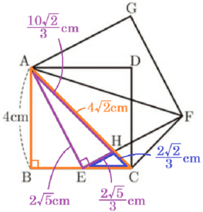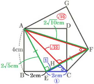 \( △AEF \) は直角二等辺三角形で,\( AE=2\sqrt{5} \; cm \) であることから,